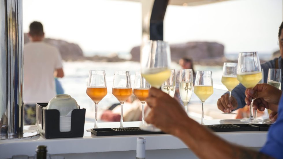 Our catamaran is fully stocked with everything you need for a day of fun on the water, including: